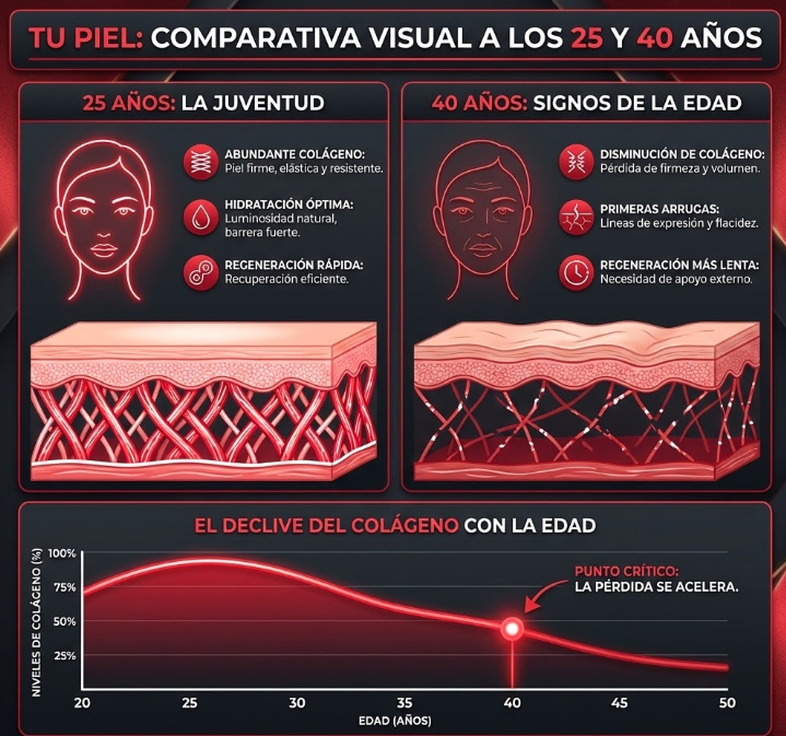 Te miras al espejo y ves algo que no te gusta. Líneas que antes no estaban. La piel menos firme. Menos luminosa. Has probado cremas caras, rutinas de noche, sueros milagrosos… y nada. Lo peor no es el dinero gastado. Es la sensación de que ya no puedes hacer nada. Que es "cosa de la edad" y toca aceptarlo. Pero eso no es verdad. El problema no es tu piel. Es que nunca has dado a tus células lo que realmente necesitan para regenerarse.